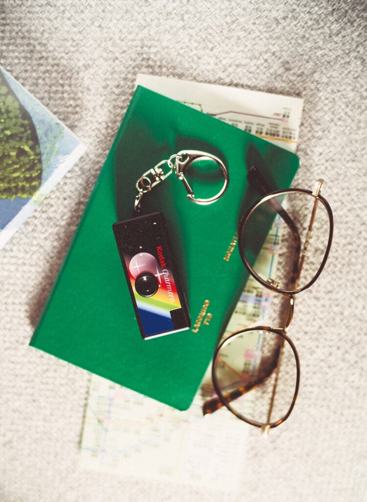 韓国発のアパレルブランド〈コダックアパレル〉から登場した、シャッターを押した感覚を味わいながら、動画撮影もできるデジタルカメラ「コダックチャーメラ」。旅の思い出を収めるだけならスマホでもできるけど、ひと手間かけてシャッターを押す瞬間はやっぱりいい。韓国のアパレルブランドが生み出しただけあって、キーチェーン型の可愛らしいサイズ感とレトロなデザイン。こんなカメラがあれば街歩きはもっと楽しくなる。トイカメラ(全7色)¥6,090(コダックアパレル https://hilightbrands-kodak.co.kr/) その他スタイリスト私物