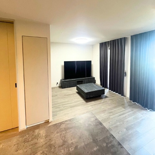 リビングと洋室の間にあった引き戸付きの間仕切り壁を壊し、明るく開放的なリビングを実現しました。壁の撤去とあわせて、壁紙や床の仕上げを行い、継ぎ目のない一体感のある空間に仕上がっています。