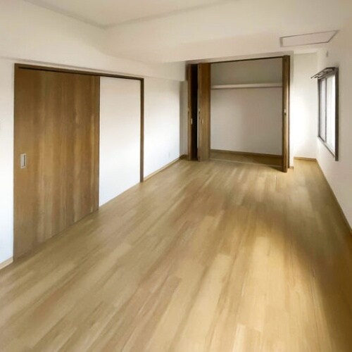 家族が引っ越して使わなくなった狭い2部屋を、思い切って一部屋にリフォーム。大容量のクローゼットも新設、カビの生えた内装も一新して、日差しの差し込む広々としたお部屋が誕生しました。