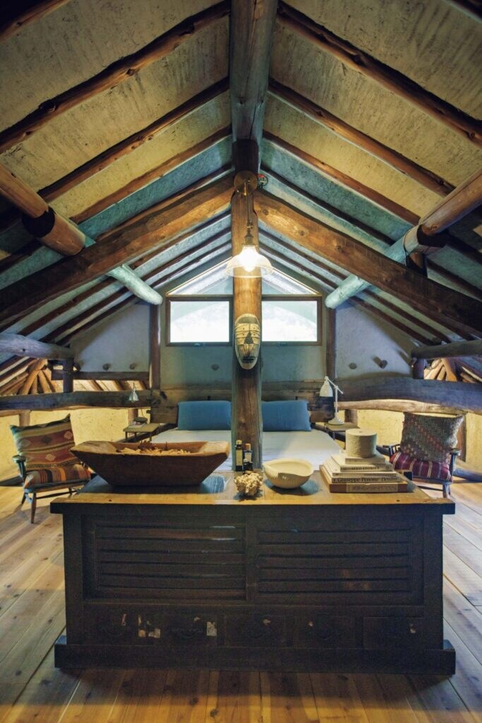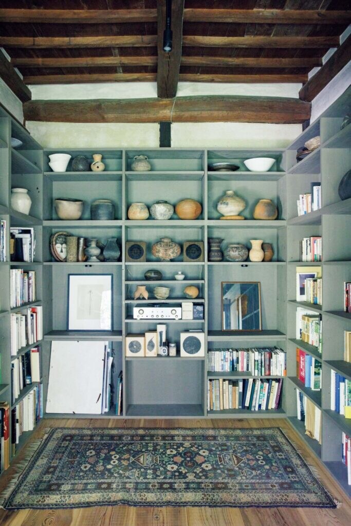 空間を彩るのは時代や国も問わず、片桐さんの心に響いたものだけ。とはいえネットオークションで手に入れることもあるというから、その審美眼たるや。「土の風合いや、時を経てしか手に入れられない味わい深さ。原始的で粗野な雰囲気を持つ、洗練されすぎていないものに惹かれます。自分にとって必要なものがわかっているから、不必要なものは増えていかない」と言い切る片桐さん。イサム・ノグチの照明や松本民芸家具のスツール、素朴なアフリカの道具、アマゾンの儀式で使われる壺から、現代作家の作品。旅先で求めたものから、物心ついたときには家にあった花器まで、ぶれのない美意識で選び抜かれたものが暮らしに寄り添い、互いを引き立てている。作り付けの本棚の半分ほどを花器が占めるのは、花がもっとも輝く瞬間を逃さずに生けるため、身近に置くことになったという必然ゆえ。「家にある工芸品の多くは花器。花を生けたときに日本的になりすぎず無国籍化してくれるもの、花を引き立て寄り添いつつも、主張がある塩梅のいいものを」