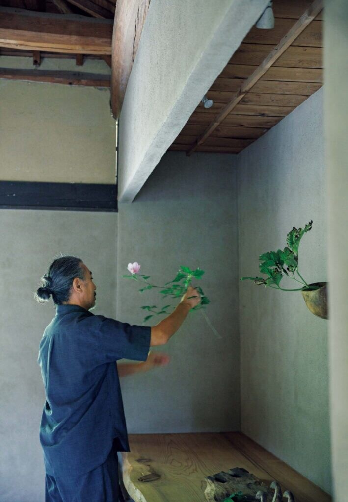 一つひとつがエピソードを持つ、ものに囲まれた空間はプリミティブさと洗練とが共存し、なんともいえない心地よさがある。その理由を尋ねると、こんな答えが返ってきた。「空間も花器も、花を入れたときに完成する余白があることが重要。未完成なものがいい」。あくまでも花が主役という、華道家の作る居場所である。