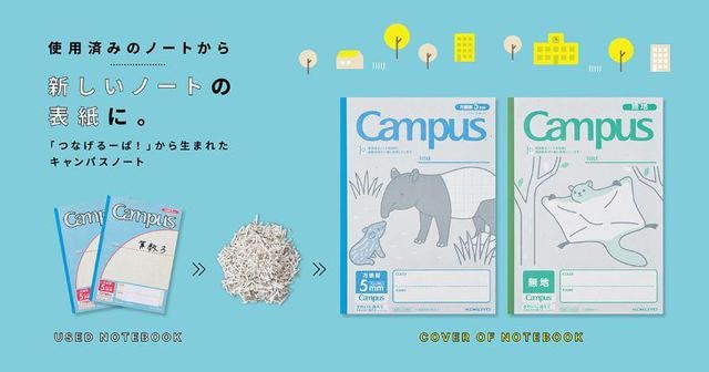 【新製品】使用済みノートをリサイクルした「キャンパスノート<つなげるーぱ!>」