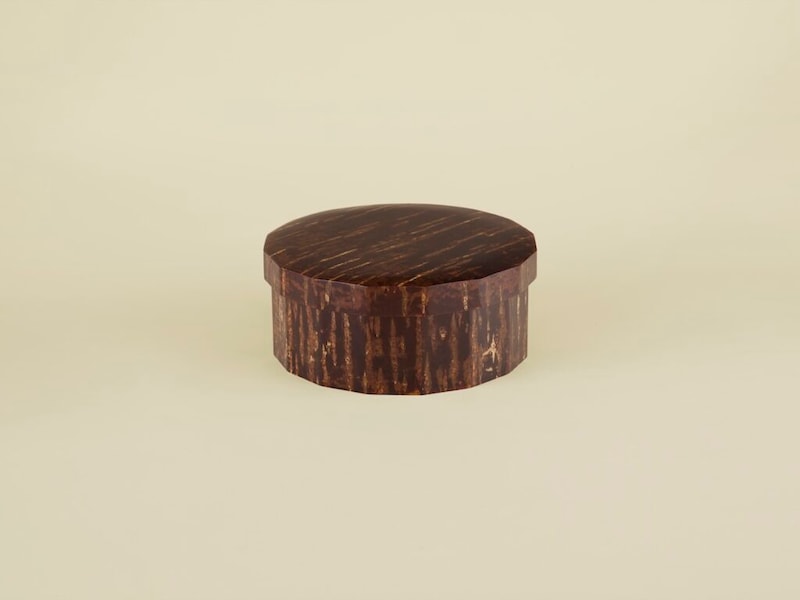 独特の木目と質感を持つこの茶櫃(ちゃびつ)は、秋田県の伝統工芸である桜皮細工(樺細工とも呼ばれる)のもの。耐久性に優れた山桜の木皮を使ったもので、この細工を生かしたさまざまな製品が作られています。その魅力はやはり、使うたびに風合いが増していく飴色の艶。茶櫃としてはもちろん、デスクまわりの収納としても活用できそうです。