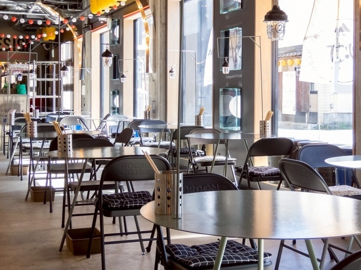 コンクリートの壁や配管が見える内装がオシャレな店内