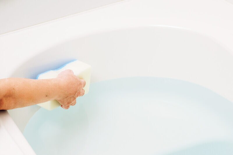 汚れはお湯のほうが落ちるので、お風呂あがりにお湯を抜くときに、喫水線をスポンジで軽くこすって。