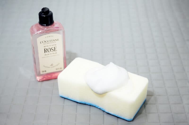 洗い場の汚れは体から出る皮脂汚れが多いので、皮脂汚れに強いボディソープが洗剤がわりに。