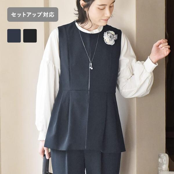 【セットアップ対応】スタイルアップが叶う ウエスト切替 ペプラムジレ【送料無料】