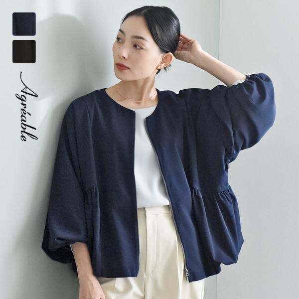 バルーンシルエットで上品見え バルーンジャケット ジップブルゾン/Agreable アグレアーブル【送料無料】