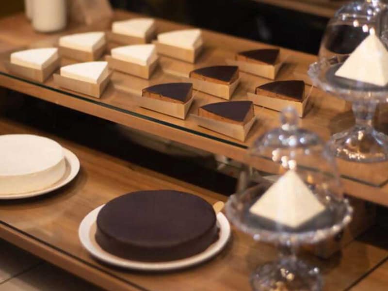 可愛らしいクラフト包装で展開される「オリジナルチーズケーキ」と「チーショコラズケーキ」は、1ピースから購入でき、少人数でも楽しめます。また、オンラインショップではホールサイズのチーズケーキを冷凍便でお取り寄せ可能です。