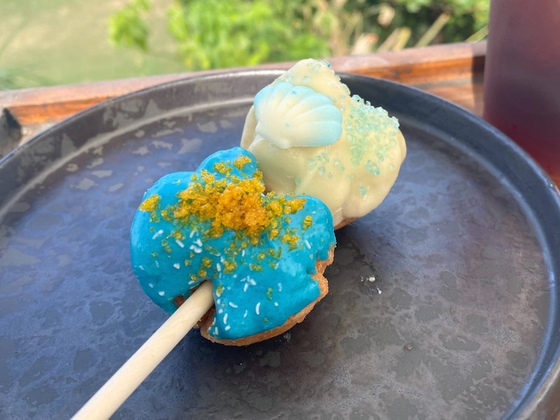 今回選んだのは、海を思わせるブルー系の2種、「ソルティマンゴー」と「サムシングブルー」。チョコレートでコーティングされたサーターアンダギーは、外側の甘さと生地の素朴な味わいのバランスが絶妙。見た目の可愛らしさはもちろん、味わいにも満足できるスイーツタイムとなりました。