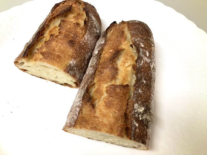 このバゲットはかなり印象に残るバゲットでした。クラストはパンを冷凍後に解凍してリベイクしてもカリカリ感が十分に保たれていました。またクラムが高加水でしっとりかつもっちり、そしてきめ細かいのです。そして小ぶりのバゲットですが、旨味が凝縮しています。何もつけずにそのままで、いくらでも食べられそうな美味しさでした。