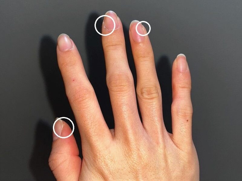 指先にささくれがあることがわかります。