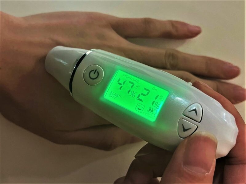 水分量と脂分を計測するスキンチェッカーで両手を調べてみると、驚きの結果が‼