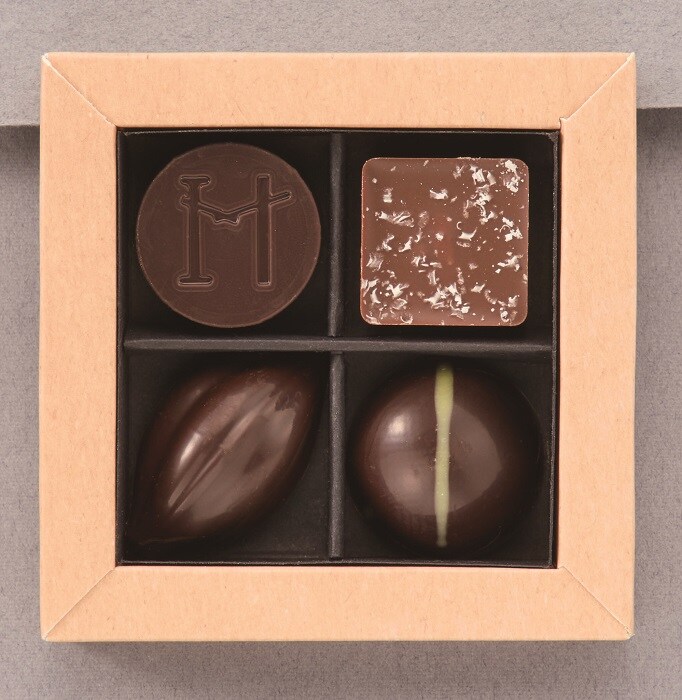 キャラメル使いの名手ベル氏の系譜を受け継ぐ、アンリ氏もキャラメル使いが得意。お店を代表するボンボンショコラを詰め合わせた「コフレ ベスト オフ 4」には、ベルガモット風味が新鮮なキャラメルも。