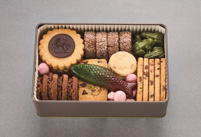 動植物からインスピレーションを受け、 生き物たちの姿や魅力をお菓子という形で表現したクッキー缶は、プラリネサンドやチュイルカカオ、ディアマンショコラ、ピーカンナッツ&メープルサブレ、カエル型の抹茶チョコや魚型のプラリネも入った新作缶。