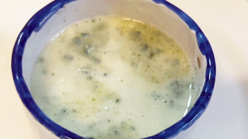 ソースは、ゴルゴンゾーラと生クリームを合わせて、レンジで1 分ほどチンすればOK。こんなソースができあがります。