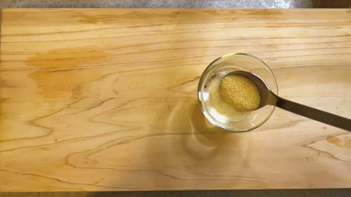 あらかじめ、粉ゼラチンをお水でふやかしておきます。