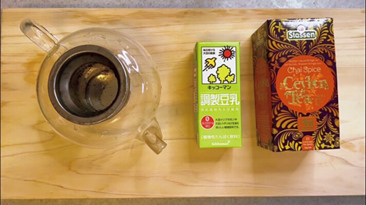 スパイシーなインド系の紅茶、チャイを豆乳でいれます。