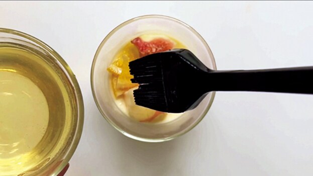 最後にこうして水で溶かしたゼラチンを、たっぷりかけるというよりは、「まぶす」という感じにかけます。
