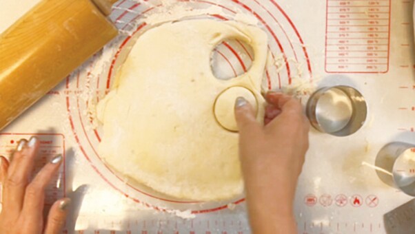 今考えたら、抜いたあとの穴あきの生地を焼いてもおもしろかったのに、とも思いましたが、普通のスコーンを作ってしまいました……。