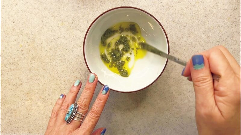 お好みの量の柚子胡椒に、生の柚子果汁を絞り酸味を加え、さらにオリーブオイルを加えます。