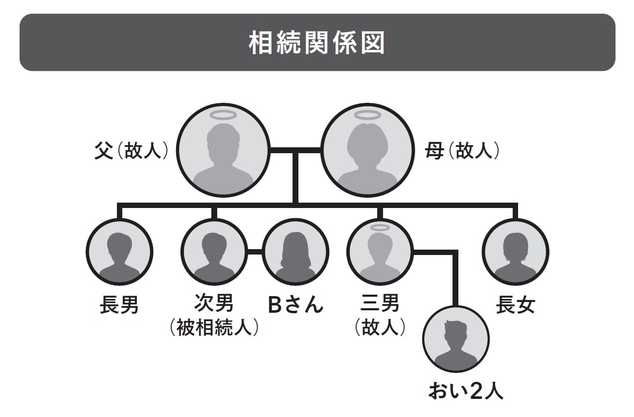 亡夫は兄と弟、それに妹の4人兄弟。義弟は既に他界しているが子供が2人いる。義兄の説明によればBさん以外の相続人は4人。その法定相続割合は遺産総額6000万円の4分の1、約1500万円になるという。