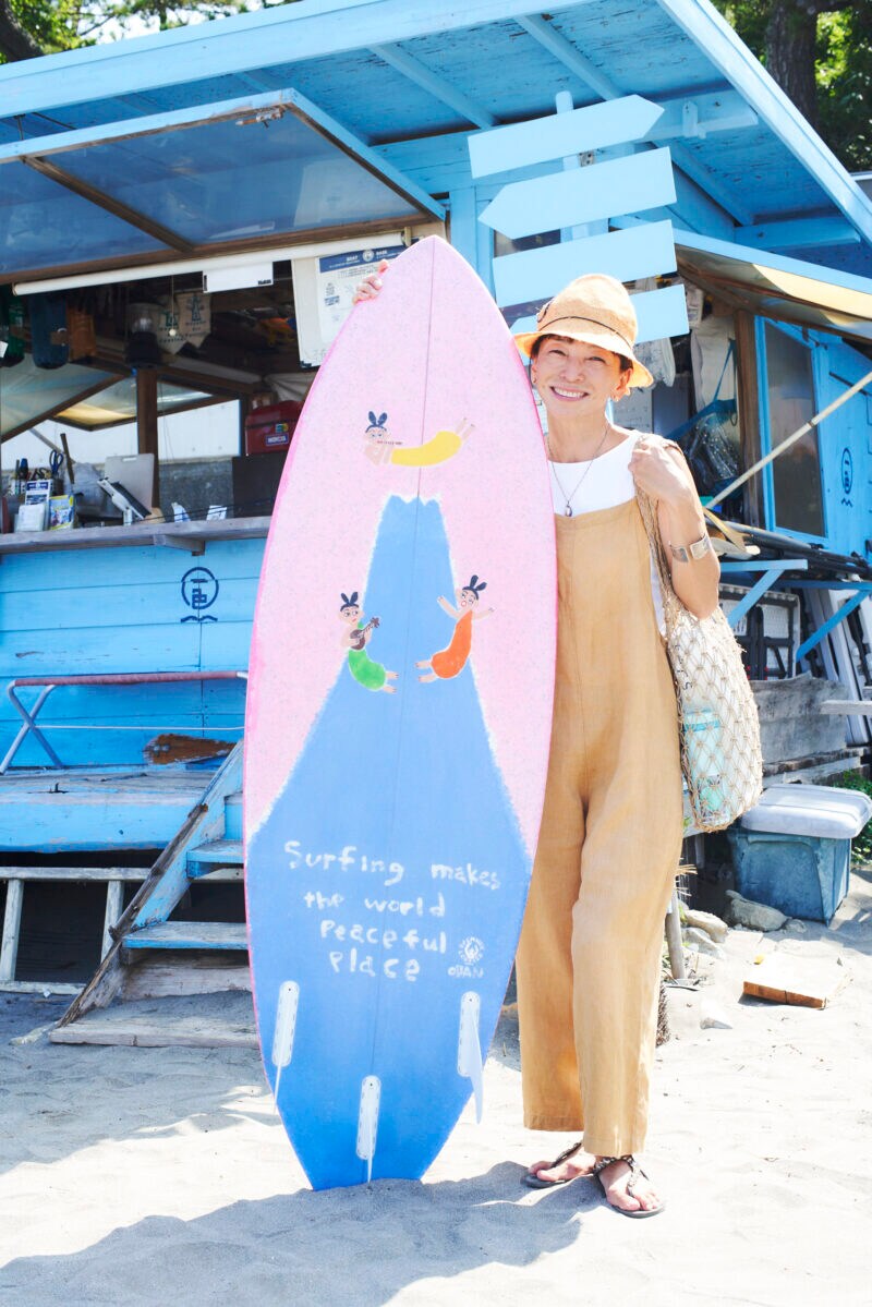 シルエットがきれいなサロペットパンツでサーフィンへ