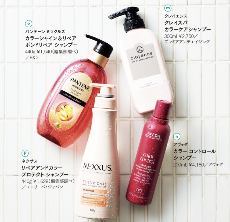 表面を保護してカラー成分が流出するのを防ぐもの、マイルドな洗浄成分でカラー後の髪をいたわるもので、染めたカラーが長続き。