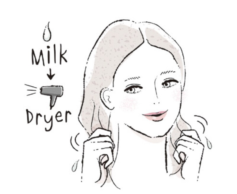 タオルドライの後、ダメージケア効果のあるヘアミルクを毛先中心になじませてからドライヤーを。