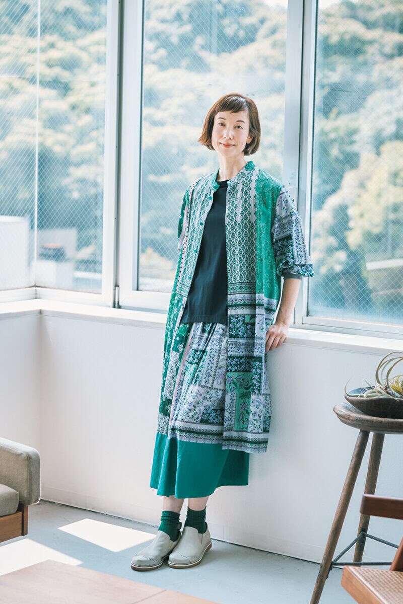 ワンピースは今の時季なら、はおり風に着ても。スカートは前後で違う柄を楽しめるデザイン。食事会や観劇など華やかなシーンにぴったり。