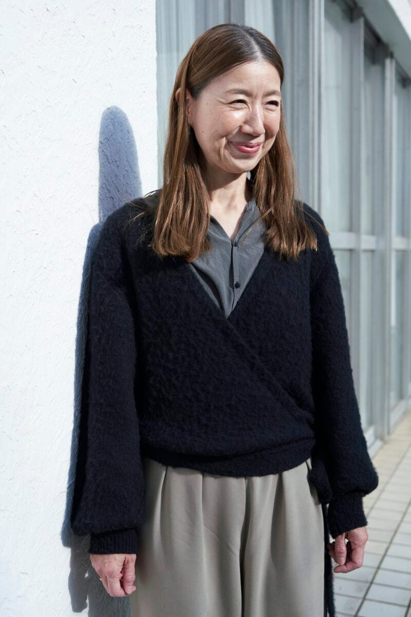 月曜日は茶花のお稽古の日。「四季折々の草花にふれられるのが楽しみで。神楽坂(東京都新宿区)に通って4、5年になります」と清水さん。シルクシャツにカシュクールニットを重ねて、メンズライクなタックパンツを合わせました。「腰まわりはゆったりですが、脇ファスナーを閉めるとすっきりした女性らしいシルエットが気に入っています。アウターのキャメルのロングコートは、3シーズンめ。柔らかな着心地が重さにまさり、とても気に入っています」(清水さん)