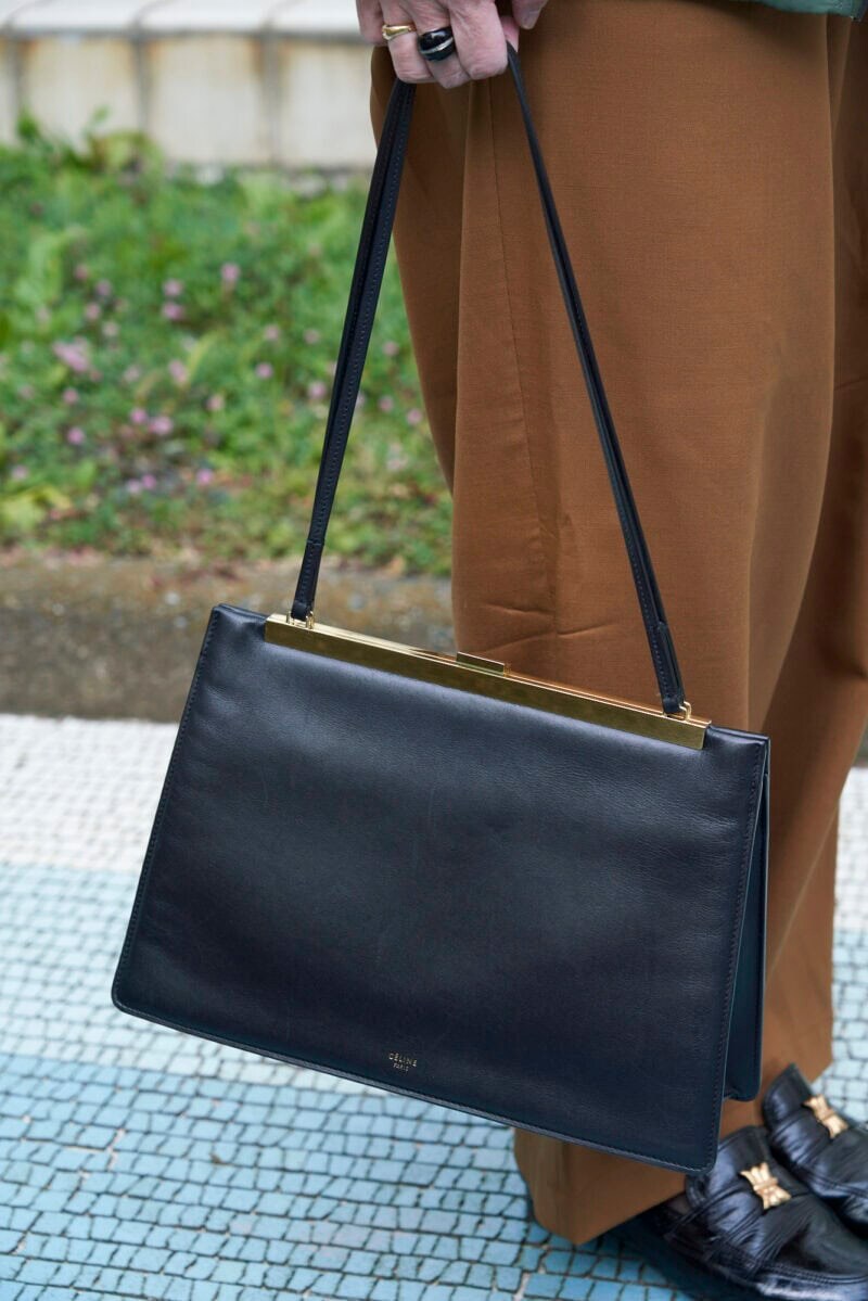 セリーヌのショルダーバッグは、手持ちにしてこなれ感を