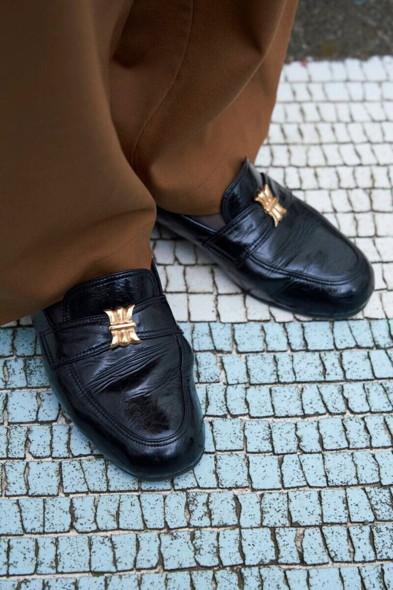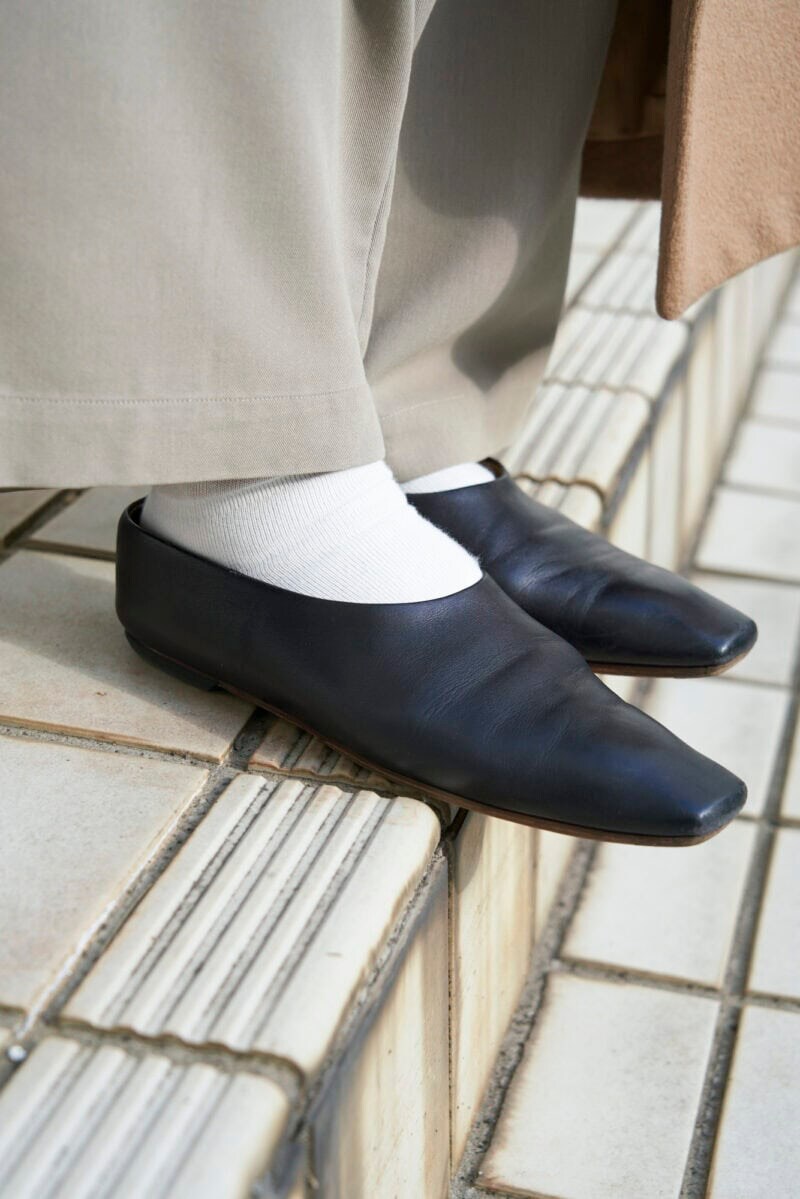 シンプルなデザインのレザーシューズはザロウのもの。「セール品でしたが、かなり悩んで購入しました」と笑う清水さん。絶妙な甲と踵のシルエットの美しさが、足元を引き締めてくれます。