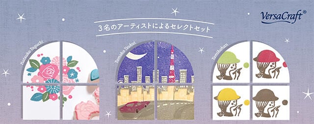 スタンプインクメーカーのツキネコは、紙や布ににじまずきれいに捺せる水性顔料インクパッド「バーサクラフトS」の4個セットとして、著名なアーティストがセレクトした特別セット全6種をこのほど発売した。アーティストは、田口奈津子さん・津久井智子さん・とみこはんさんの3人。各税込1,408円。