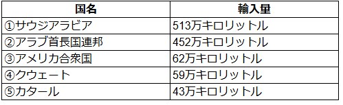 (日本の原油輸入量上位)