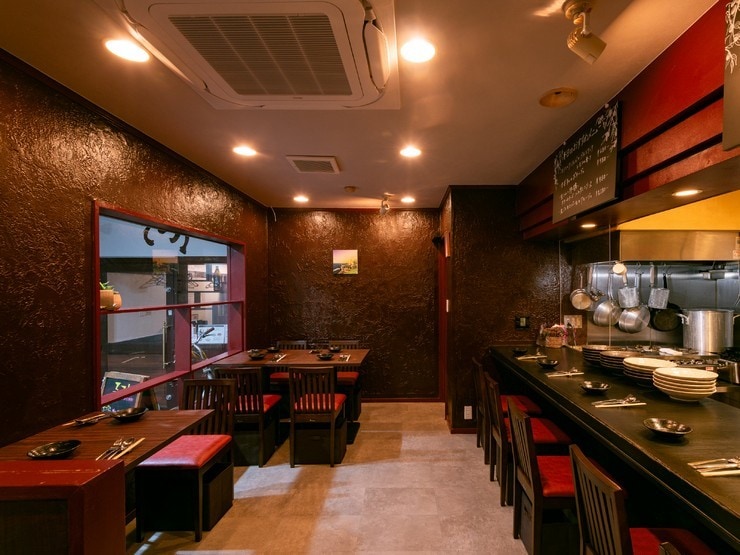 ブラウンの壁と木の温もりを感じる落ち着いた雰囲気の店内には、テーブル席のほか、一人でも立ち寄りやすいカウンターを完備しています。料理との相性を考えたワインやカクテルの種類が豊富で、記念日には華やかなサプライズプレートをオーダーすることも可能。大切な人と思い出に残る時間を過ごしてみてはいかがでしょうか。