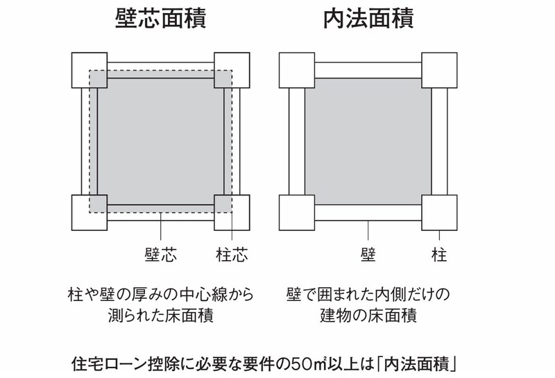 住宅ローン控除に必要な要件の「50平方メートル以上」は内法面積です。