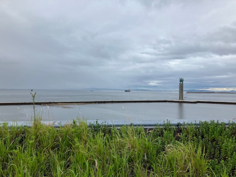 大屋根リングの上に登り、会場を一望した。リングの中にひしめく個性豊かなパビリオン群は興味深かったが、振り返ると、それらとは対照的に閑散とした海が広がっていた。