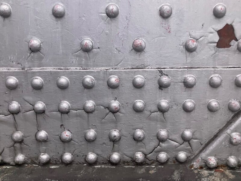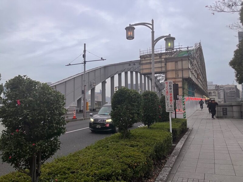 勝鬨橋は築85年を迎え、修復工事の真っ只中だった。本来は中央部分が跳ね上がり、船が通行することができる可動橋だが、車の交通量増加により、1970年以降は開かずの橋になっているそうだ。その構造をじっくり観察すると、溶接技術が発達した現代では使われなくなった無数のリベット鋲が歴史を感じさせる。