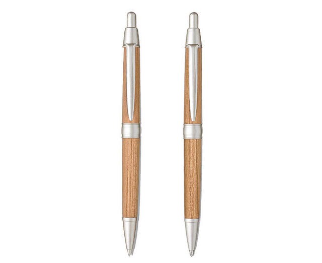 「宮城けやきボールペン」(ボール径0.7㎜)と「宮城けやきシャープペン」(芯径0.5㎜)は、宮城県の県木である「けやき」の間伐材をペン軸に使用したサステナブルな筆記具。