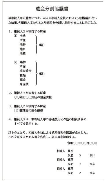 遺産分割協議書の書式例は[図表1]を参照してください。