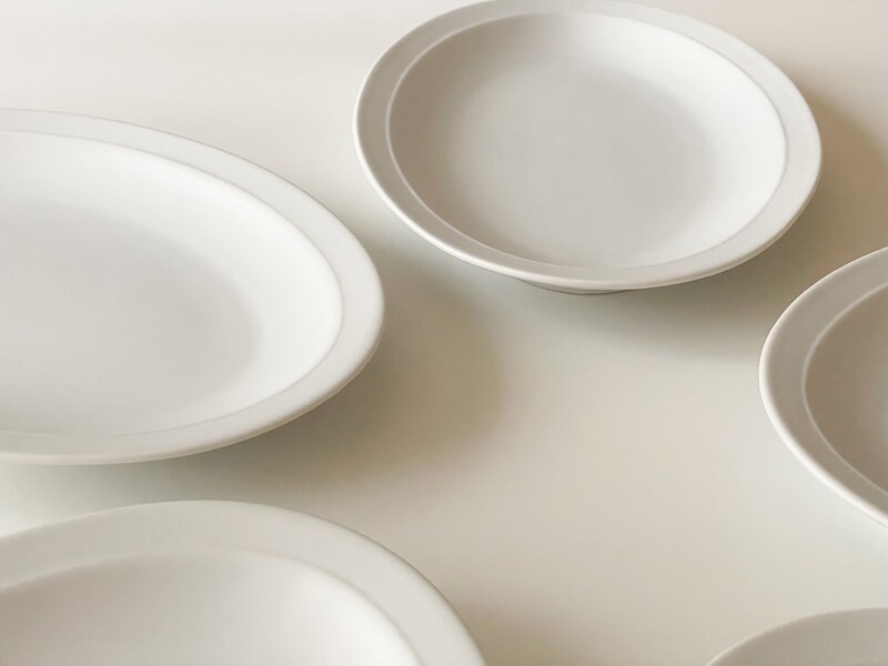 料理の色を鮮やかに引き立ててくれる、マットな「白」です。