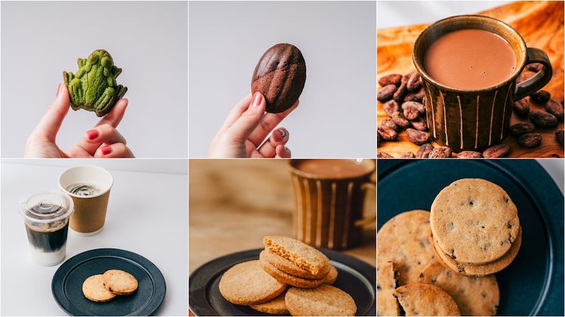 ペルー産アマゾンカカオのフルーティーな香りを閉じ込めた「アマゾンカカオのガトーショコラ」、カカオニブの心地よい食感と藻塩の塩味がクセになる「アマゾンカカオニブと藻塩のサブレ」、ブランドロゴのモチーフでもあるカエルをかたどったしっとり濃厚な抹茶フィナンシェ「カエルのしずく」。アマゾニアならではの個性豊かな菓子を取り揃えました。