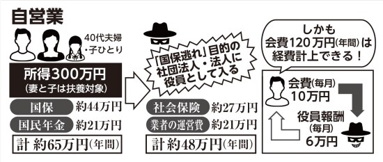 こう説明するのは、「T-group税理士法人」代表税理士の竹中政仁氏だ。保険料は自治体によって異なるが、たとえば東京都新宿区の場合、40歳以下で所得がゼロでも、国保の保険料は年約6万6000円かかる。専業主婦1人、子ども2人がいれば、年間の保険料は20万円近くになる計算だ。こうした負担感を背景に、「国保を避けたい」と考える人たちの間で、広がるのが、“国保逃れ”なのだ。