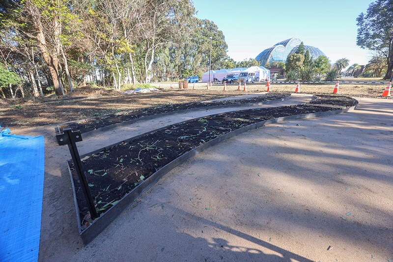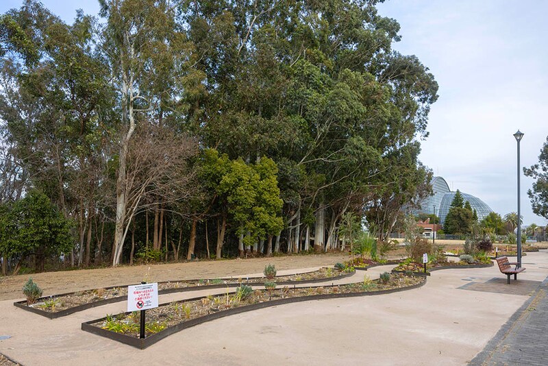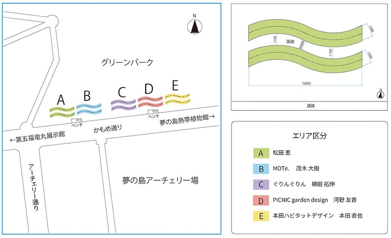 公園内の通路に沿って2対1組のウェーブガーデンが5つ並んでいます。常緑のユーカリを背景に、通路からコンテストエリア全体を眺めたり、2対のウェーブガーデンの間の通路を歩きながら、AからEへと移り変わる景色を楽しめるのも魅力。植物をすぐそばに感じられる、心地よい空間です。
