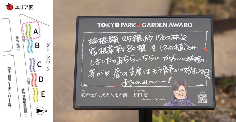 広告代理店、生命保険会社勤務を経て、9年間の専業主婦期間中に地域の緑化活動に関心を持つ。2015年よりマンション内の緑化クラブやボランティアサークルでガーデニング活動を開始。翌2016年、恵泉女子大学公開講座「ガーデナー入門実践編」修了。以降、公共空間での植栽管理や講座助手として活動を続け、自然と共生する都市の緑のあり方を探求している。
