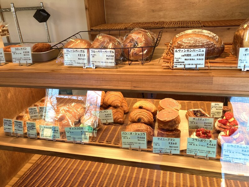 ショーケースの左側にはカンパーニュやベーグル、クロワッサンなどのヴィエノワズリがあります。