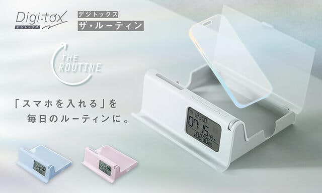 「デジトックス ザ・ルーティン スマホ用タイムロックケース」は、スマホを一定時間触れないように、2種類のタイマー機能で〝ついついスマホ〟の誘惑をブロックするタイマーロックケース。その時々に合わせて必要な時間を設定でき、集中できる環境を整えるのに役立つ。その他にも時計表示やロックを伴わないタイマー機能、万が一の際の緊急時リセット機能を備え、安全性にも配慮している。自分との約束事を明示できる「目標シール」「スマホ契約書」付き。別売りの単4電池3本を使用する。