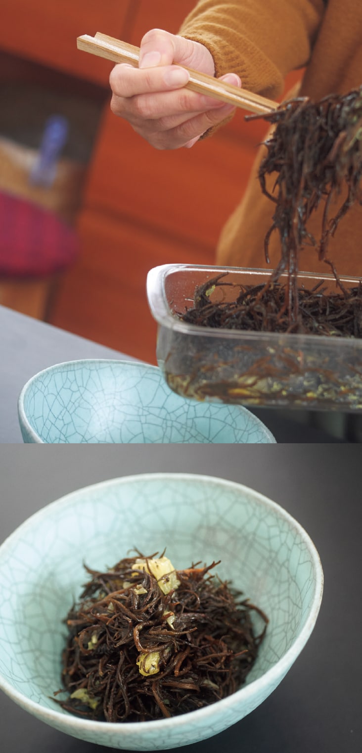 ゆでずに生のまま食べられる新芽ひじき。