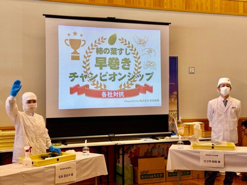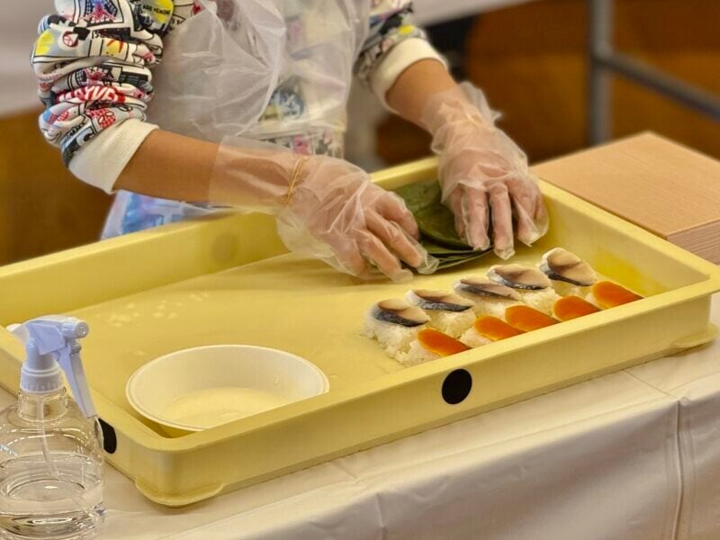 17日には、10名先着で「柿の葉寿司手作り体験」が開催されました。何気なく食べていましたが、巻くとなると皆さん大苦戦……!